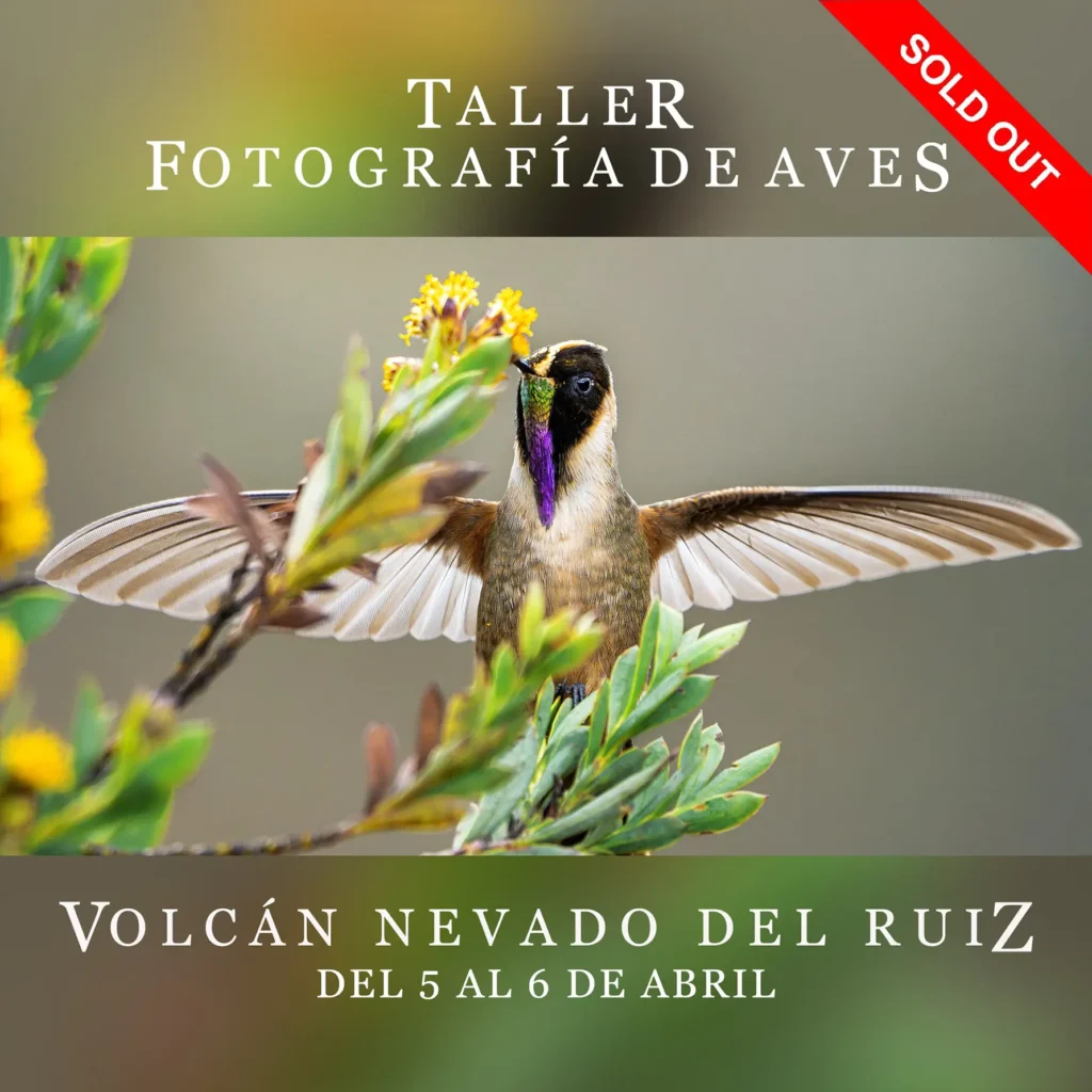 El taller tendrá inicio el día Sábado 24 de Mayo a las 6:00 AM desde el terminal de transporte de la ciudad de Manizales, por lo que deberas llegar desde el día anterior a la ciudad, de ahí nos embarcaremos directamente al páramo Colombiano donde después de un desayuno típico de la región iremos en búsqueda de nuestro colibrí Chivito del Ruiz; el colibrí que llevo visitando hace mas de 3 años donde he podido identificar su comportamiento y mejores lugares para registrarlo en todo su esplendor, adicional podemos llegar a registrar el Aguila de Páramo y El Cóndor de los Andes que suelen pasar en la mañana por la zona, para posteriormente ir a nuestro Lodge de La Hacienda el Bosque para acomodarnos y continuar haciendo fotografía de aves con un guía experto en Avistamiento de aves de la zona.
